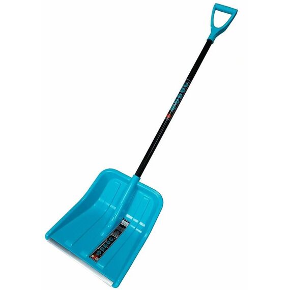 Ковш лопат изготовлен из первичного блоксополимера пропилена спец. марки. Используемый суперконцентрат "Бирюзовый" придаёт яркий внешний вид лопате. Благодаря качественному материалу получено изделие высокой прочности. Кромка лопаты защищена специальным алюминиевым профилем с небольшим закруглением по краю. Это позволяет легче убирать снег, где территория не очень ровная. Поверхность лопатного ковша гладкая за счет постоянного контроля за состоянием оснастки, что значительно снижает вероятность налипания снега. Габариты ковша лопаты с усиленными рёбрами жёсткости делают её одной из самых востребованных снегоуборочных лопат для уборки любого снега. Черенок изготовлен из алюминиевого профиля, окрашенного порошковой краской, что позволило значительно снизить вес лопаты в сборе и избежать свойства алюминия пачкаться во время соприкосновения с ним. Соединение ковша лопаты с черенком происходит с помощью пружинного металлического фиксатора, позволяющего её собрать и разобрать.Габариты: 1,48 X 0,4 X 0,1 м Вес: 1.1