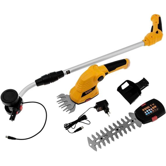 Ножницы кусторезы предназначены для стрижки и подравнивания кустов и травы. Телескопическая штанга обеспечивает удобство в использование. Система быстрой смены модулей обеспечивает простоту в работе. В электродвигателе используется медная обмотка для предотвращения быстрого перегрева. В комплекте идет автоматическое зарядное устройство. Особенности: Штанга телескоп. Небольшие габариты и малый вес. Регулируемая ручка. Встроенный аккумулятор. Вес без упаковки, кг 1.055 Страна-производитель Китай Напряжение аккумулятора, В 7,2 Тип аккумулятора Li-Ion Напряжение аккумулятора, В 7,2 Ёмкость аккумулятора, А*ч 1.5 Время работы, мин 50 Родина бренда Германия Тип ножа двусторонний Время заряда, ч 3,5