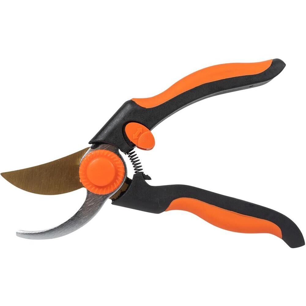 Секатор Материал: углеродистая сталь СS50, покрытие лезвий- олово. Материал ручки - нейлон + TPR. Фиксатор пластиковый. Ручки с прорезиненным покрытием. Вес: 225 г. Размер: 21х5,5 см. Макс. диаметр среза : 15 мм