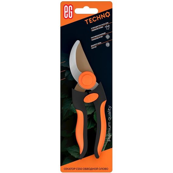 Секатор ЕГ (811) Techno Секатор CS50 обводной покр олово TPR оранжевый, сталь