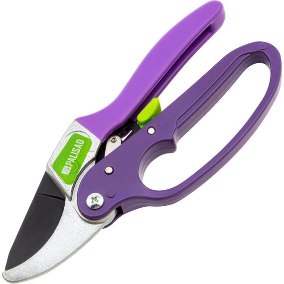 Секатор прямого реза Palisad 60488 длиной 200 мм, с храповым механизмом и металлическими обрезиненными рукоятками, — универсальный инструмент, использующийся для обрезки живых и сухих веток толщиной до 20 мм. Благодаря храповому механизму обрезание ветки происходит пошагово, что обеспечивает ровный и чистый срез с минимальными повреждениями растения. Опорное лезвие с углублением помогает удерживать ветку в процессе работы. Степень смыкания лезвий можно регулировать посредством винта. Секатор будет полезен для ухода за растительностью на дачном участке.ПреимуществаПрочность и высокий ресурс — лезвия изготовлены из среднеуглеродистой стали, режущая кромка, прошедшая индукционную закалку, имеет прецизионную заточку.Защита от разрушения — тефлоновое покрытие на рабочем лезвии и порошковая эмаль на опорном предохраняют садовый секатор от коррозии.Эффективность — тефлоновое покрытие облегчает рез, храповой механизм увеличивает прикладываемое усилие на 20%.Безопасность — гарда на нижней рукоятке защищает пальцы от травм, фиксатор удерживает лезвия в сомкнутом положении во время хранения и транспортировки.Надежность — верхняя рукоятка отлита из прочного алюминиевого сплава, нижняя — из углеродистой стали.Комфортная работа — благодаря накладке из ПВХ на верхней рукоятке инструмент удобно лежит в руке.
