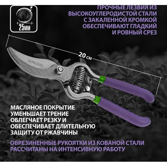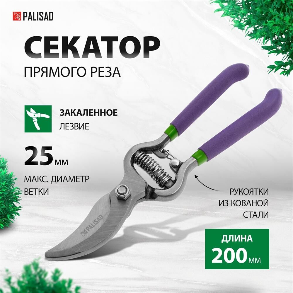 Секатор PALISAD Секатор прямого реза 200 мм, обрезиненные рукоятки 60561