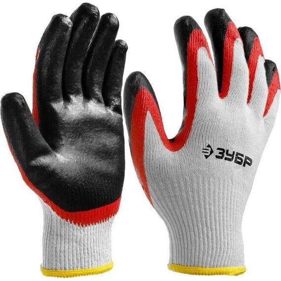 Садовые перчатки ЗУБР х2 ЗАЩИТА, L-XL, эластичные, натуральный хлопок, перчатки с двойным латексным обливом (11459-XL)