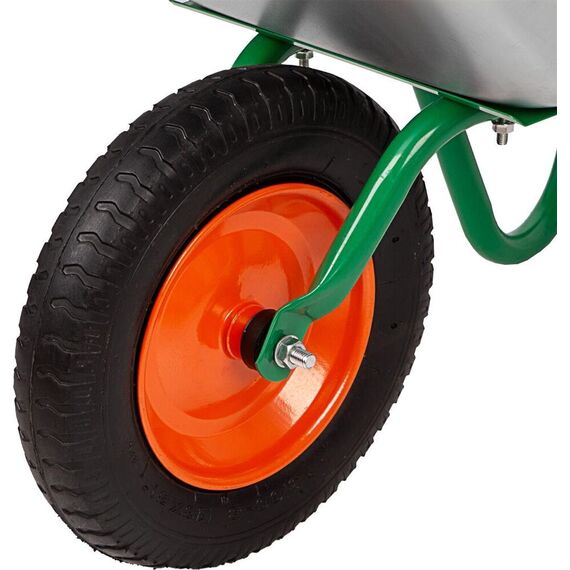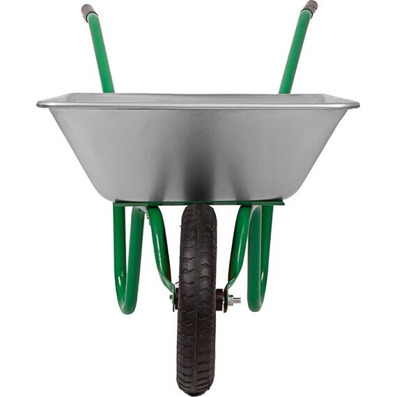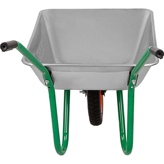 Тип садовая. Длина 1.28 м. Ширина 0.59 м. Высота 0.61 м. Максимальная нагрузка 100 кг. Объем корыта 65 л. Материал корыта сталь оцинкованная. Толщина корыта 0,6 мм. Материал рамы сталь окрашеная. Толщина рамы 1,0 мм. Диаметр рамы 28 мм. Тип колеса пневматическое. Маркировка колеса 3.00-8.
