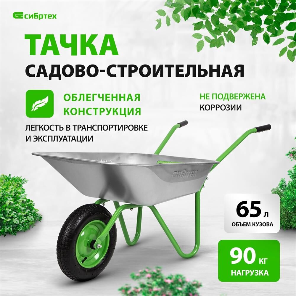 Тачка садовая СИБРТЕХ Тачка садовая одноколесная облегченная, объем 65 л 689615