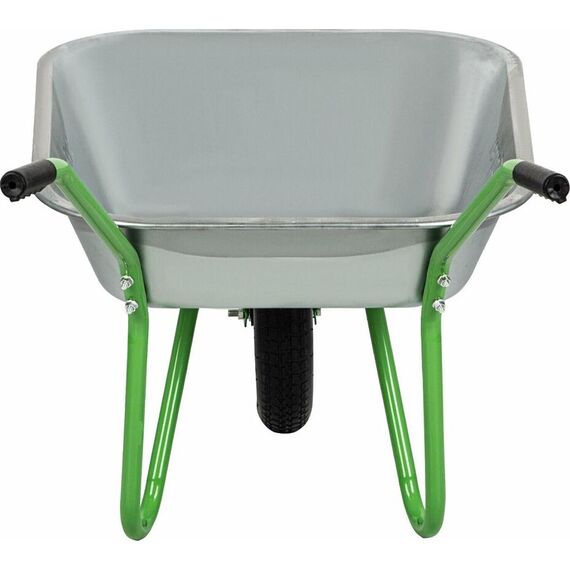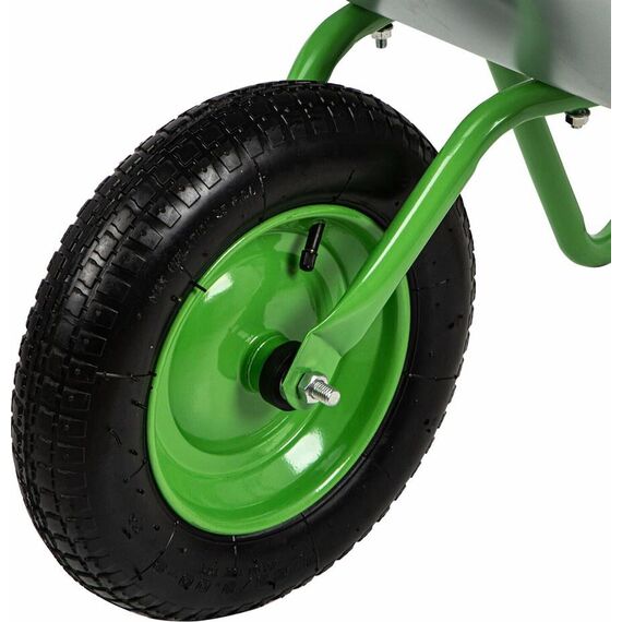 Максимальная нагрузка 90 кг. Объем корыта 65 л. Толщина корыта 0,5 мм. Толщина рамы 1,0 мм. Материал корыта сталь оцинкованная. Материал рамы сталь окрашеная. Диаметр рамы 25 мм. Количество колес 1. Тип колеса пневматическое. Диаметр колеса 345 мм.