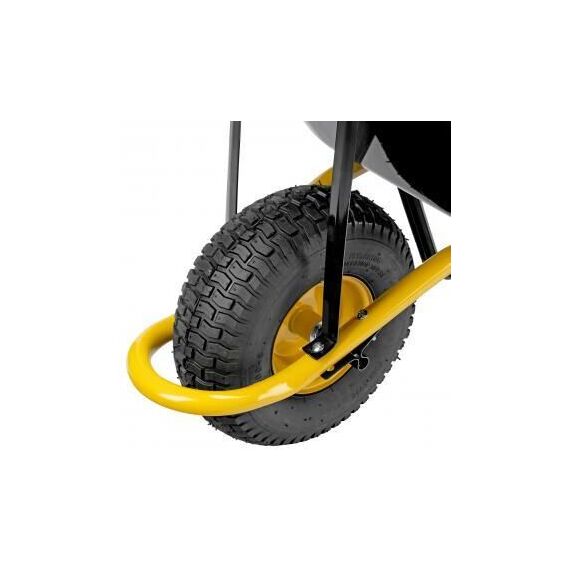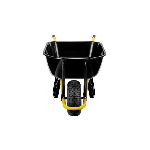 - Устойчивость — тачка не проваливается в грунт благодаря широкому пневмоколесу и подпятникам на ножках.