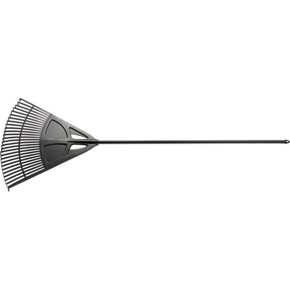 Грабли веерные пластиковые Palisad 61806 с 27 плоскими зубьями и шириной рабочей части 620 мм, с алюминиевым черенком, - садовый инвентарь, предназначенный для уборки мелкого мусора и листьев с газонов и грядок. Плоские зубья эффективно очищают территорию, не повреждая растительность. Грабли поставляются в сборе с черенком.ПреимуществаРабочая часть шириной 620 мм обеспечивает максимальный охват участка, что сокращает время уборки.Грабли изготовлены из эластичного и стойкого к ультрафиолету полипропилена, поэтому прослужат долго.На основании имеются ребра жесткости, повышающие прочность инструмента.Зубья дополнены распоркой для надежной защиты от поломок.