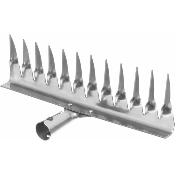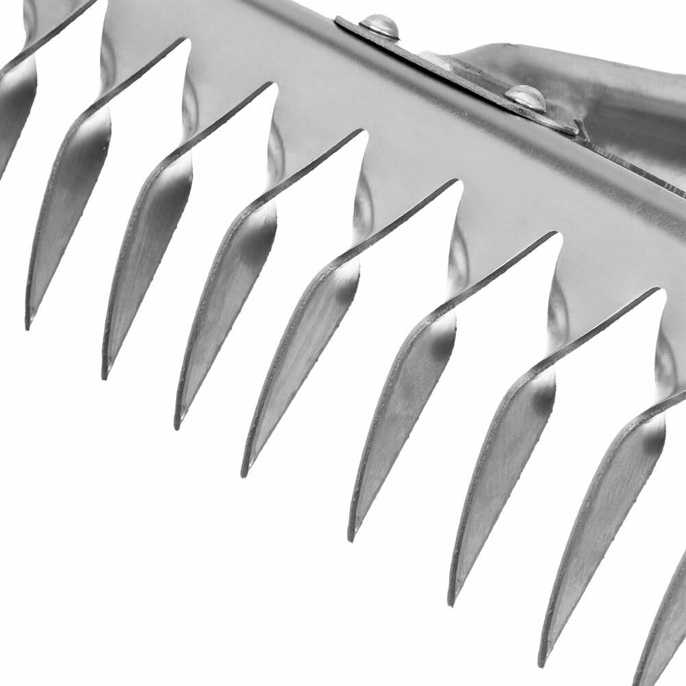 СИБРТЕХ Грабли, нержавеющая сталь, 290 мм, 12 витых зубьев, без черенка 61753 Количество зубьев: 12 Сечение зубьев: витой зуб Диаметр тулейки: 30 мм Материал рабочей части: нержавеющая сталь Ширина рабочей части: 290 мм