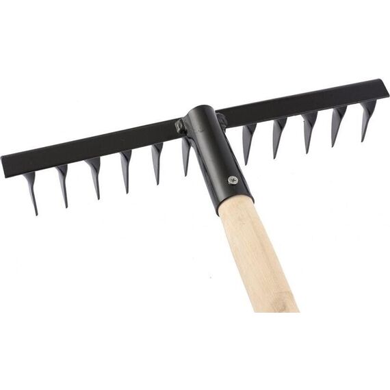 Стальные грабли Сибртех 61744 длиной 1300 мм, с 12 витыми зубьями и шириной гребенки 300 мм, служат для уборки с газонов и грядок листвы и мусора, а также позволяют проводить аэрацию почвы. Поставляются в сборе с деревянным черенком.ПреимуществаРабочая часть и тулейка изготовлены из конструкционной углеродистой стали, а зубья утолщены, поэтому грабли выдерживают большие нагрузки.Порошковое покрытие предотвращает появление коррозии, продлевая рабочий ресурс инструмента.Зубья имеют витую конфигурацию, поэтому эффективно разбивают комья земли и обеспечивают насыщение почвы кислородом.