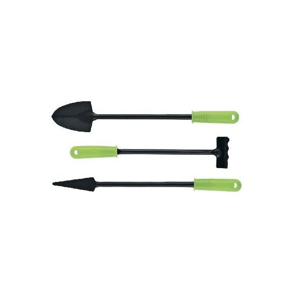 Набор инструмента предназначен для работ по уходу за комнатными растениями и цветами. В состав набора входят: Лопатка 38х230 мм Грабли четырехзубые 38х190 мм Пика посадочная 230 мм Особенности Инструмент изготовлен из конструкционной стали и покрыт порошковой эмалью Снабжен пластиковой рукояткой Преимущества Надежный, долговечный инструмент Не подвержен коррозии Комплектация Лопатка - 1 шт. Грабли четырехзубые - 1 шт. Пика посадочная - 1 шт.