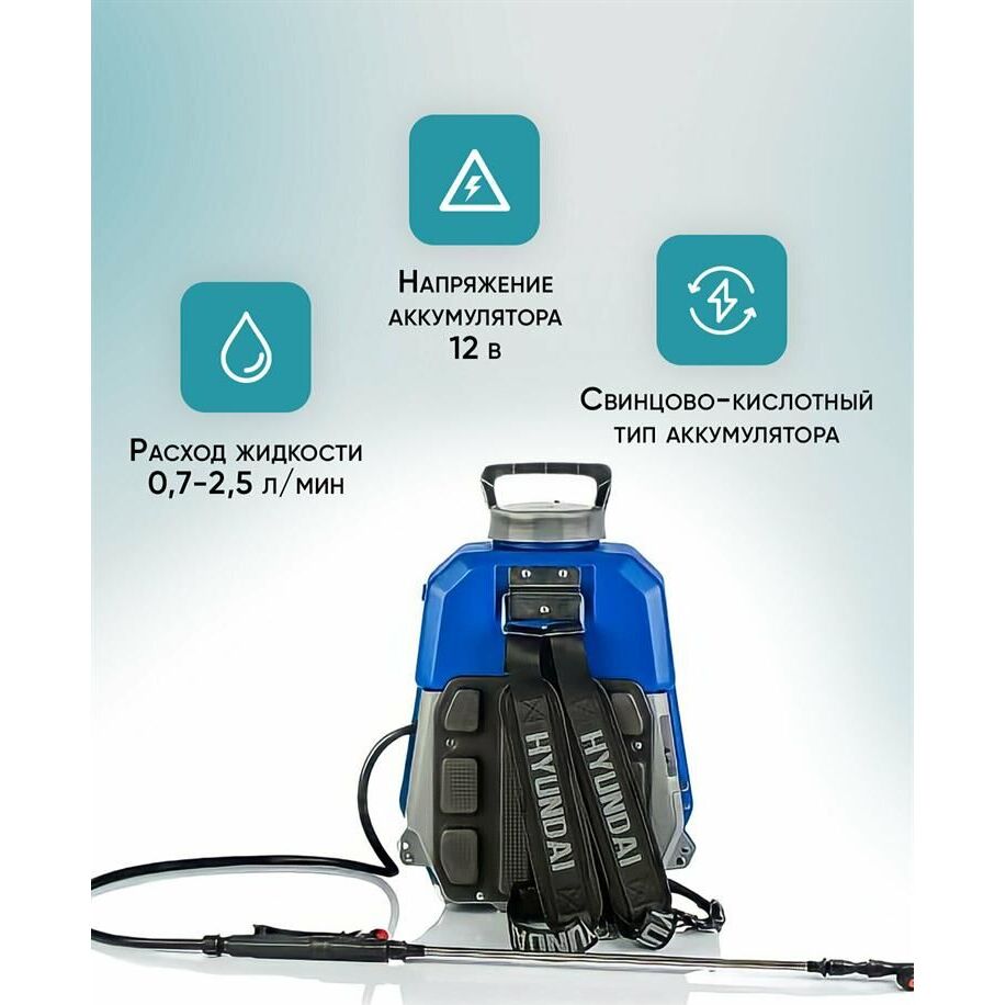 Максимальная дальность распыления по горизонтали, м. 7. Максимальное рабочее давление, МПа 0.15-0.4. Производительность, л/мин. 0.7–2.5. Объем резервуара, л. 16. Батарея свинцово-кислотная. В комплекте: Аккумуляторный опрыскиватель - 1 шт. Комплект насадок - 1 шт. Зарядное устройство - 1 шт. Руководство пользователя - 1 шт. Упаковка - 1 шт. Комплект предохранителей - 1 шт.