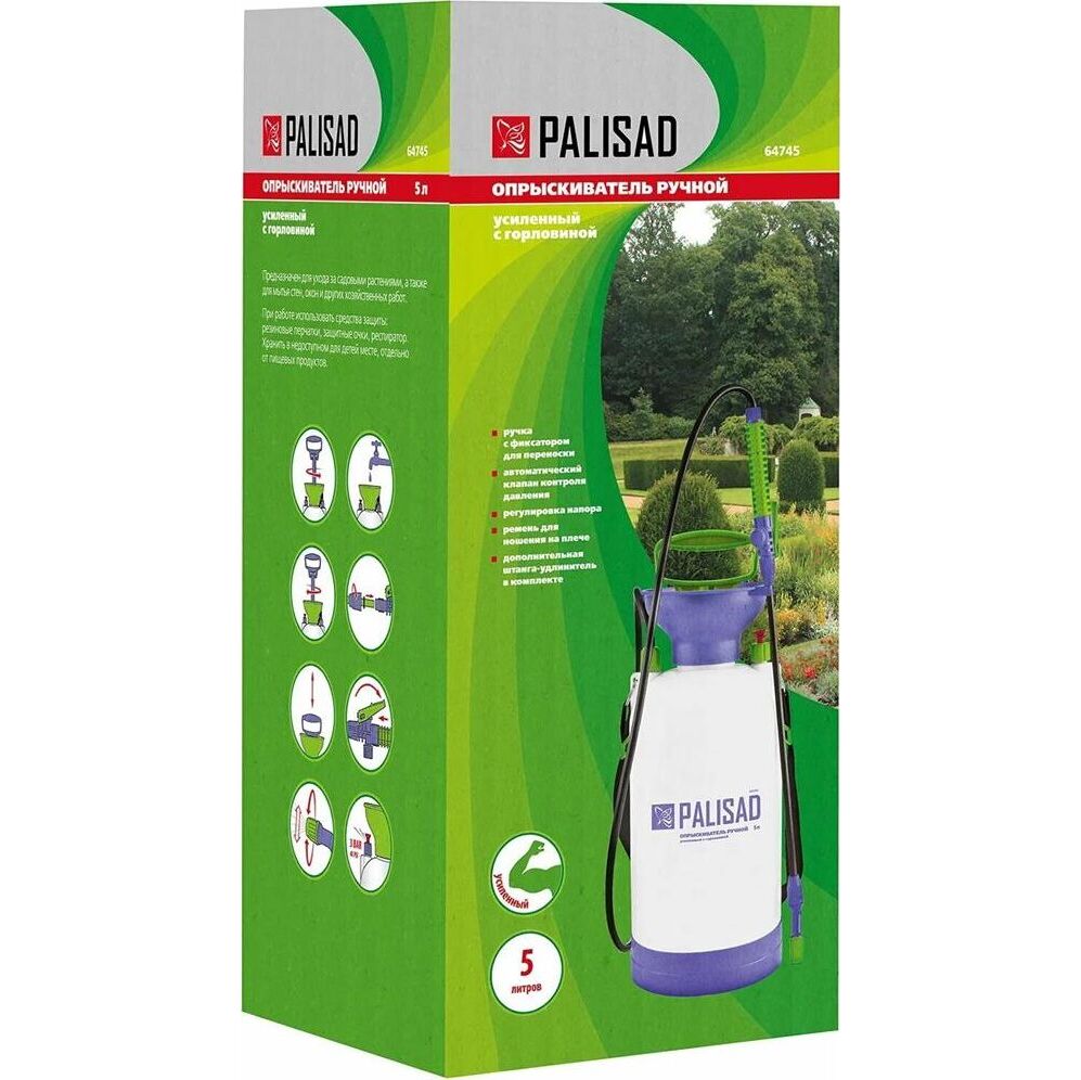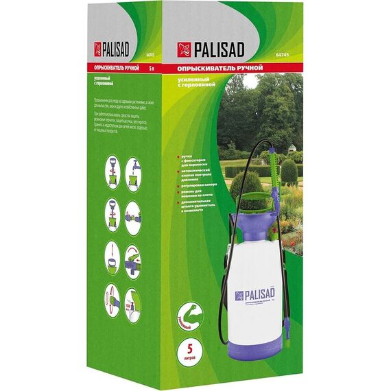 Опрыскиватель PALISAD 64745 Опрыскиватель 5 л, ручной, усиленный, с горловиной, насосом, шлангом, разбрызгивателем