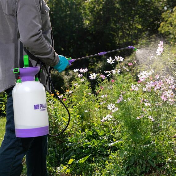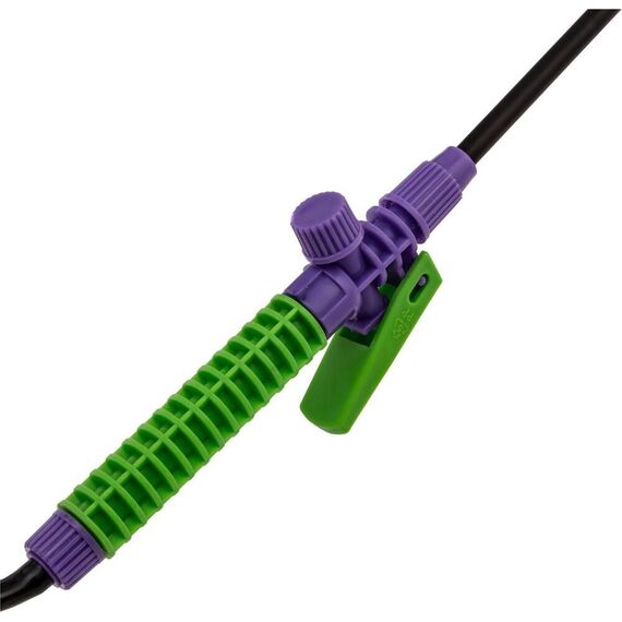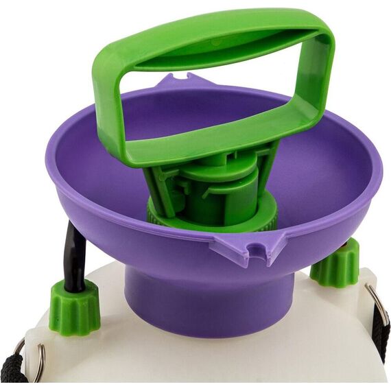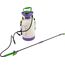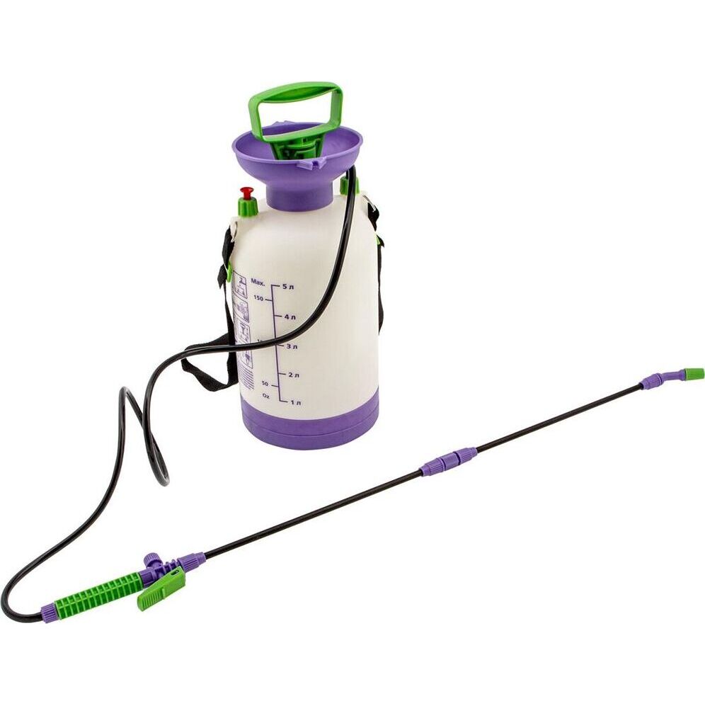 Опрыскиватель предназначен для обработки пестицидами, микрополива растений и внесения жидких удобрений в почву. Конструкция дна придает опрыскивателю устойчивость. Автоматический клапан снижает излишнее давление внутри бачка. Ручка опрыскивателя оснащена фиксатором для непрерывного полива. Широкая горловина обеспечивает быстрое и точное наполнение опрыскивателя. Преимущества: Горловина. Помповый насос. Шланг. Разбрызгиватель. Ремень для ношения на плече. Регулировка распыления. Мерная шкала.