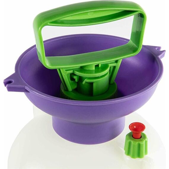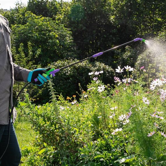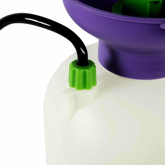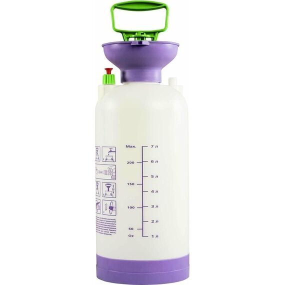 Опрыскиватель предназначен для обработки пестицидами, микрополива растений и внесения жидких удобрений в почву. Конструкция дна придает опрыскивателю устойчивость. Автоматический клапан снижает излишнее давление внутри бачка. Ручка опрыскивателя оснащена фиксатором для непрерывного полива. Широкая горловина обеспечивает быстрое и точное наполнение опрыскивателя. Преимущества: Горловина. Помповый насос. Шланг. Разбрызгиватель. Ремень для ношения на плече. Регулировка распыления. Мерная шкала.