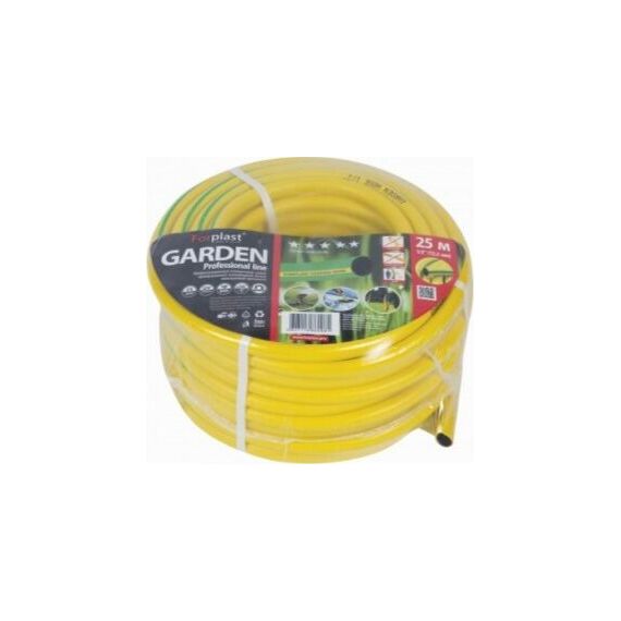 Шланг ПВХ GARDEN, напорный (арм) 1/2" 25м (раб.давл. 10 атм) армированный, полив, непрозр. Трёхслойный армированный поливочный шланг из ПВХ. Рабочее давление 10 атм. Шланг обладает повышенной прочностью благодаря увеличенной толщине стенки. Диапазон рабочих температур от 0 до +50 градусов. Верхний слой выполняется в 2-х цветовых решениях - зелёном и жёлтом, нижний слой - чёрный. По всей длине шланга нанесена полоса и надпись. Толщина стенки 2,2 мм, вес бухты 3,25кг.
