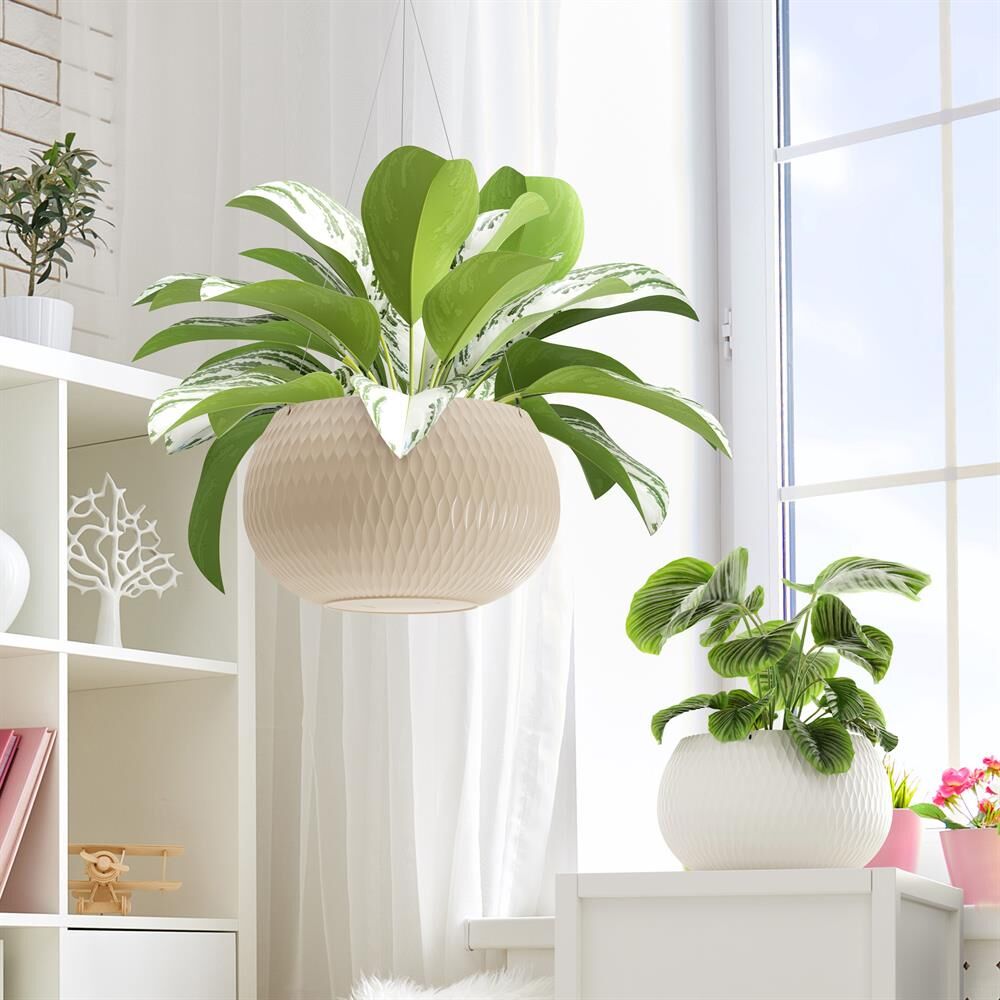 Кашпо «Жемчужина» предназначено для выращивания комнатных и уличных растений. Оно имеет два варианта использования: стоя на полу или подоконнике и в комплектации с подвесным металлическим механизмом, что позволит подвешивать кашпо как дома, так и на садовых участках, расширяя варианты выбора растений от прямых до вьющихся. Кашпо состоит из двух частей. Внутренняя вставка имеет отверстия и предотвращает перелив растений и загнивание корней. Внешняя часть защищает кашпо от протекания, а многогранная поверхность придает визуальную легкость и особенную эстетику изделию. Благодаря необычной сферической форме оно станет украшением любого интерьера.
