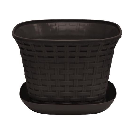 Кашпо квадратное "Ротанг" 3,4 л с поддоном (венге). Размер (ДхШхВ) мм 209х209х150.