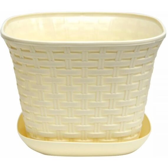 Кашпо квадратное "Ротанг" 9,1 л с поддоном (слоновая кость). Размер (ДхШхВ) мм 275х275х205.
