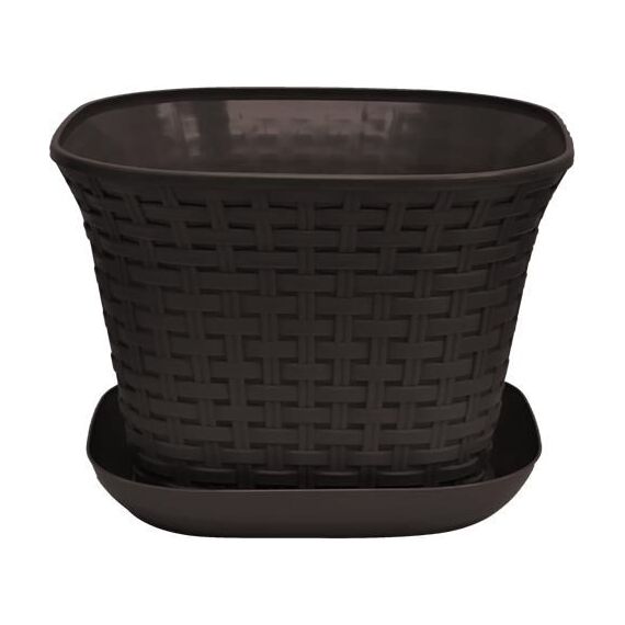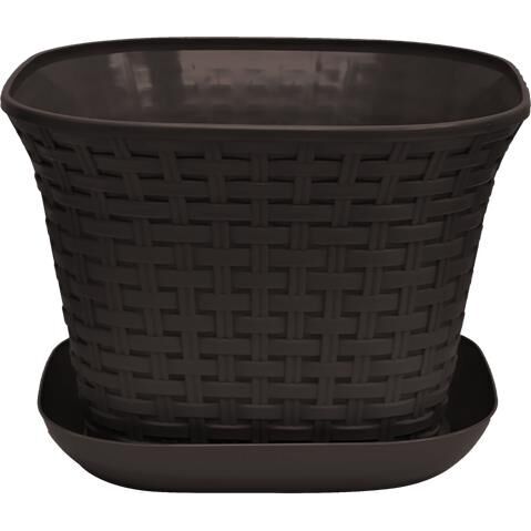 Кашпо квадратное "Ротанг" 9,1 л с поддоном (венге). Размер (ДхШхВ) мм 275х275х205.
