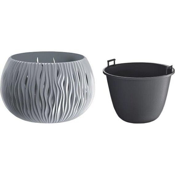 Кашпо для цветов Sandy Bowl является замечательным украшением садового интерьера, дома, зоны отдыха. Оно обладает повышенной стойкостью к высоким и низким температурам, а также к различным механическим повреждениям. Кашпо для цветов Sandy Bowl состоит из двух предметов: внутренней емкости, куда сажают растение, и декоративной емкости. • Комплектация: 2 предмета (внутренняя емкость + декоративная емкость) • Размер (ДМхВ): 238х161 мм • Объемы: 2,3 л • Цвет: серый • Материал: пластик • Вес брутто: 0,384 кг • Количество в упаковке: 5 штук • Производитель: Prosperplast • Страна: Польша