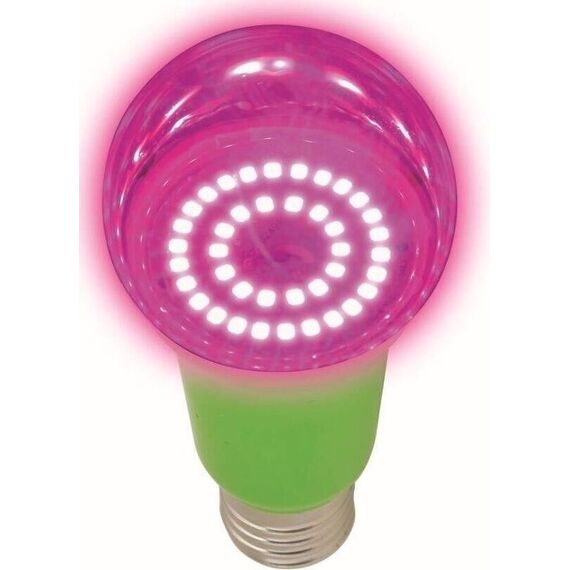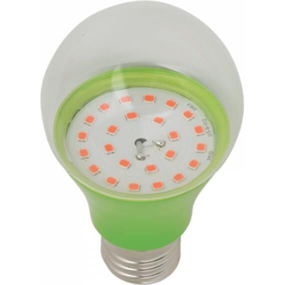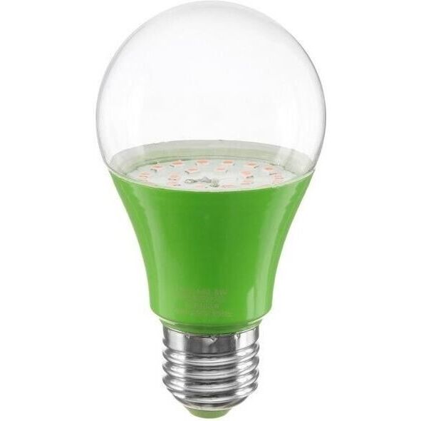 Лампа светодиодная для растений. Форма "A", прозрачная. Спектр для рассады и цветения. Входное напряжение, В - 200-250; Высота изделия, мм - 110; Диаметр лампы, мм - 60; Диапазон рабочих температур, °С - от -30 до +40; Длина изделия, мм - 60; Класс энергопотребления - A++; Материал корпуса (изделия) - термопластик; Мощность, Вт - 8. Фотосинтетический фотонный поток, мкмоль/c - 11; Цоколь - Е27.
