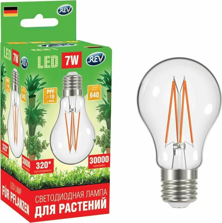 Светильник для растений светодиодный REV 32416 4 GARDEN А60/E27/7W FILAMENT 575-650Нм