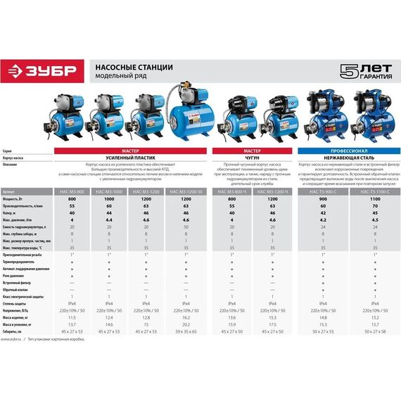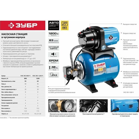 Насосная станция ЗУБР НАС-М3-800-Ч Станция насосная "МАСТЕР" М3 автоматическая