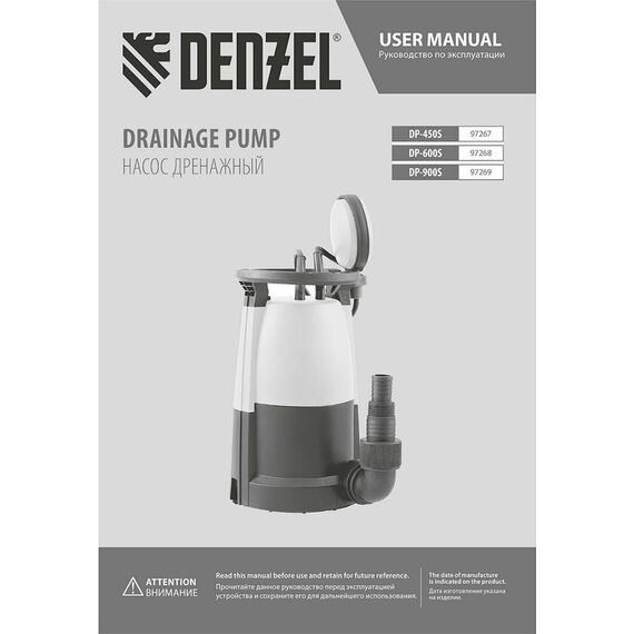 Дренажный насос DENZEL DP-450S, 450 Вт, напор 6 м, 12000 л/ч 97267