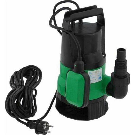 Насос дренажный для грязной воды, мощность 400 Вт, максимальный напор 6 метров, максимальный расход 150 л/мин, максимальный размер пропускаемых частиц 35 мм, максимальная глубина погружения 8 метров, материал корпуса пластик, встроенный поплавок