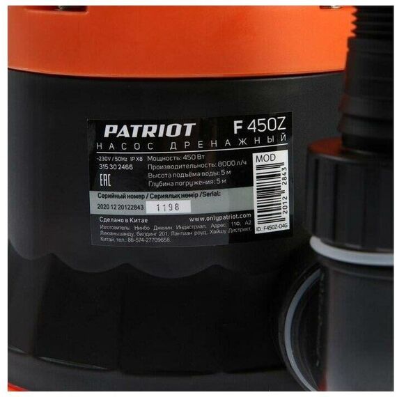 Дренажный насос PATRIOT 315302466 F 450Z Насос дренажный