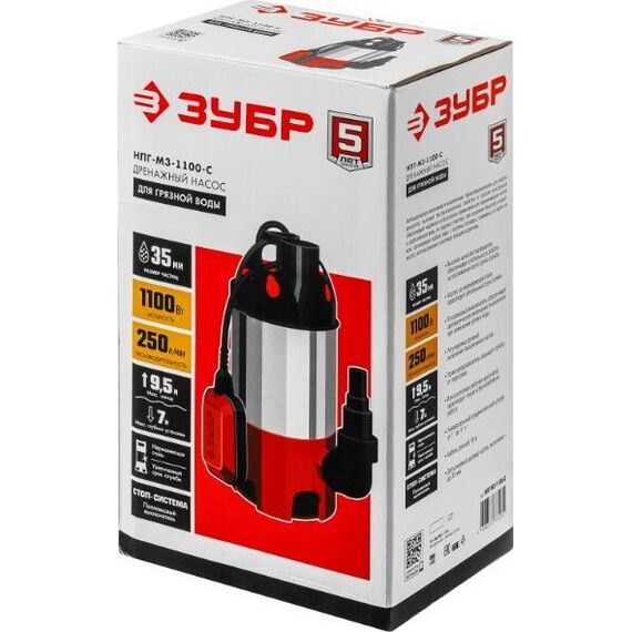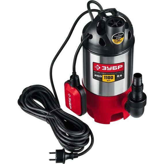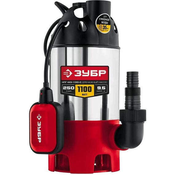 Дренажный насос ЗУБР НПГ-М3-1100-С Дренажный насос для грязной воды корпус нерж. сталь, 1100 Вт