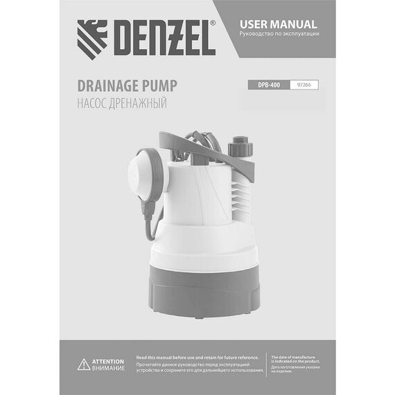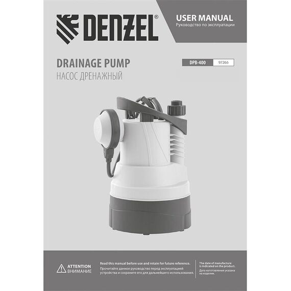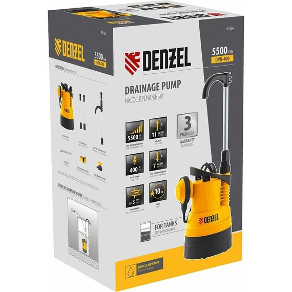 Насос DENZEL Дренажный насос для чистой воды DPB400, 400 Вт, подъем 11 м, 5500 л/ч 97266