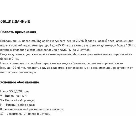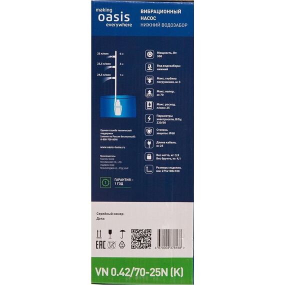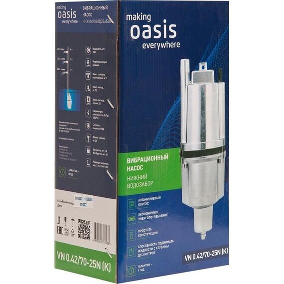 Вибрационный насос OASIS VN 0.42/70 - 25N - нижний забор