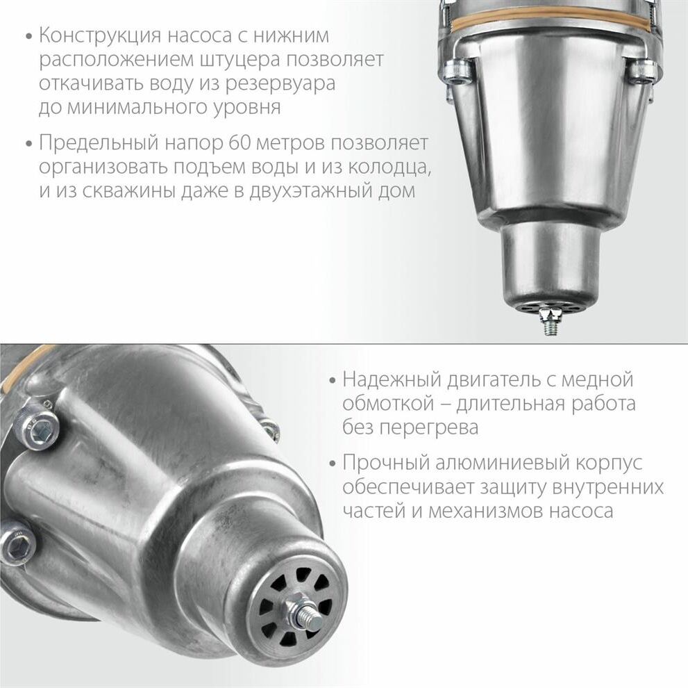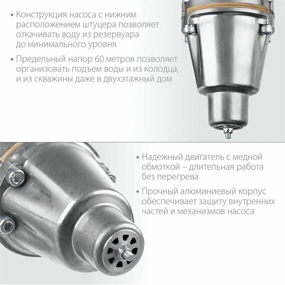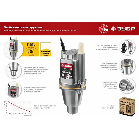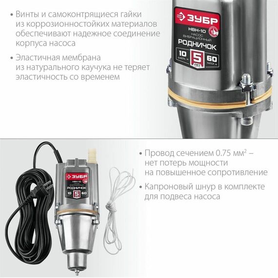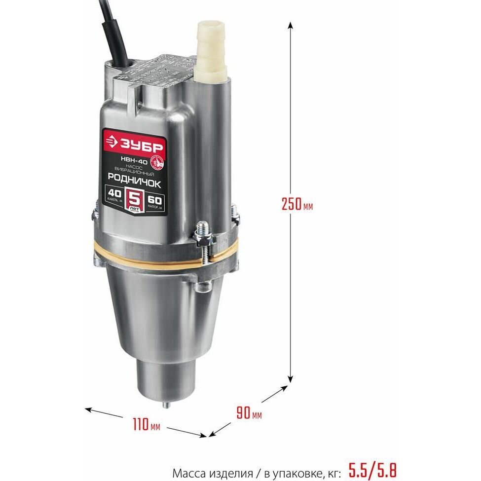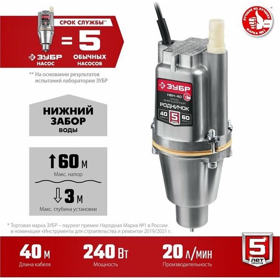 Вибрационный насос ЗУБР НВН-40 Вибрационный насос с нижним забором воды Родничок-Н, 40 м провод (БВ-0,12)