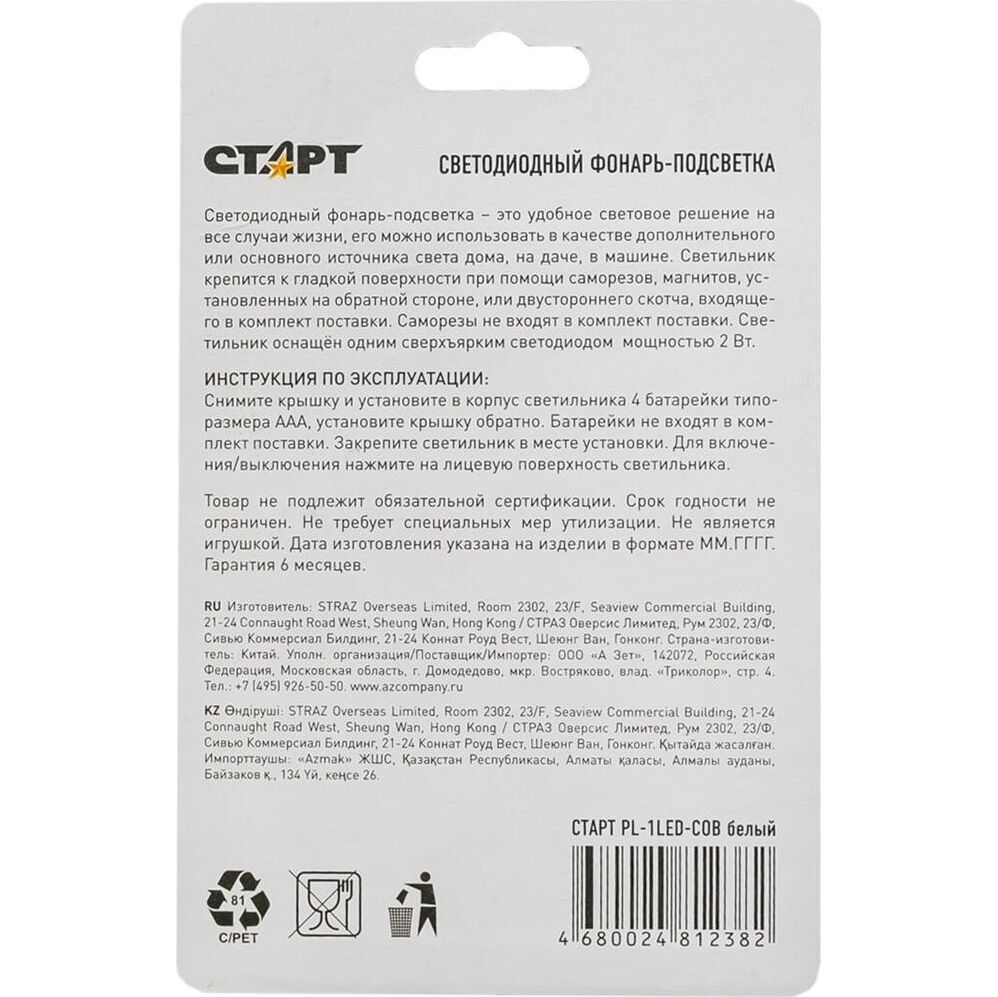 Пушлайт СТАРТ (15782) PL-1LED-COB белый