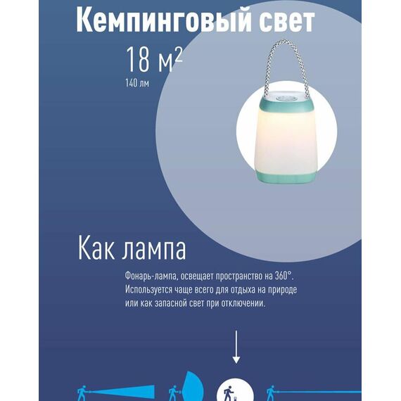 Кемпинговый фонарик с мягким тёплым светом. Впишется в атмосферу отдыха, отлично подойдёт для пикника или на стол веранды. Может использоваться как детский ночник.Три уровня яркости для создания подходящей атмосферы отдыха. 3W 3xAA ,время работы мах.15ч.