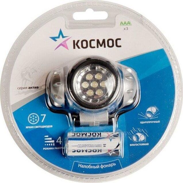 Фонарь налобный светодиодный 7хLED 70лм 3хAAA(в комплекте)