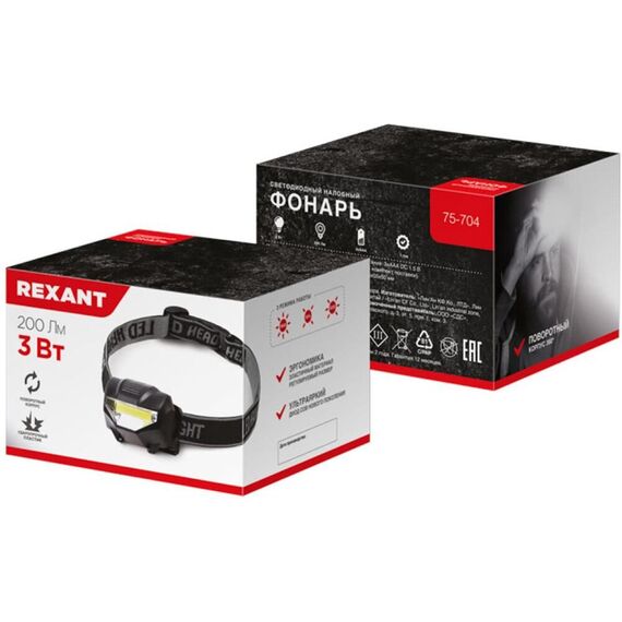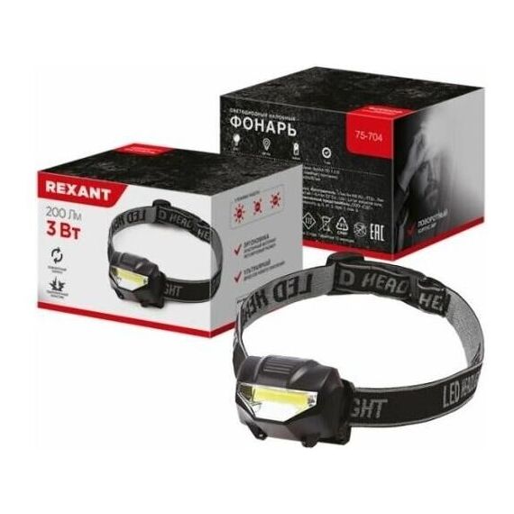 Фонарь REXANT (75-704) Фонарь налобный, зеркальный рефлектор, 3 Вт