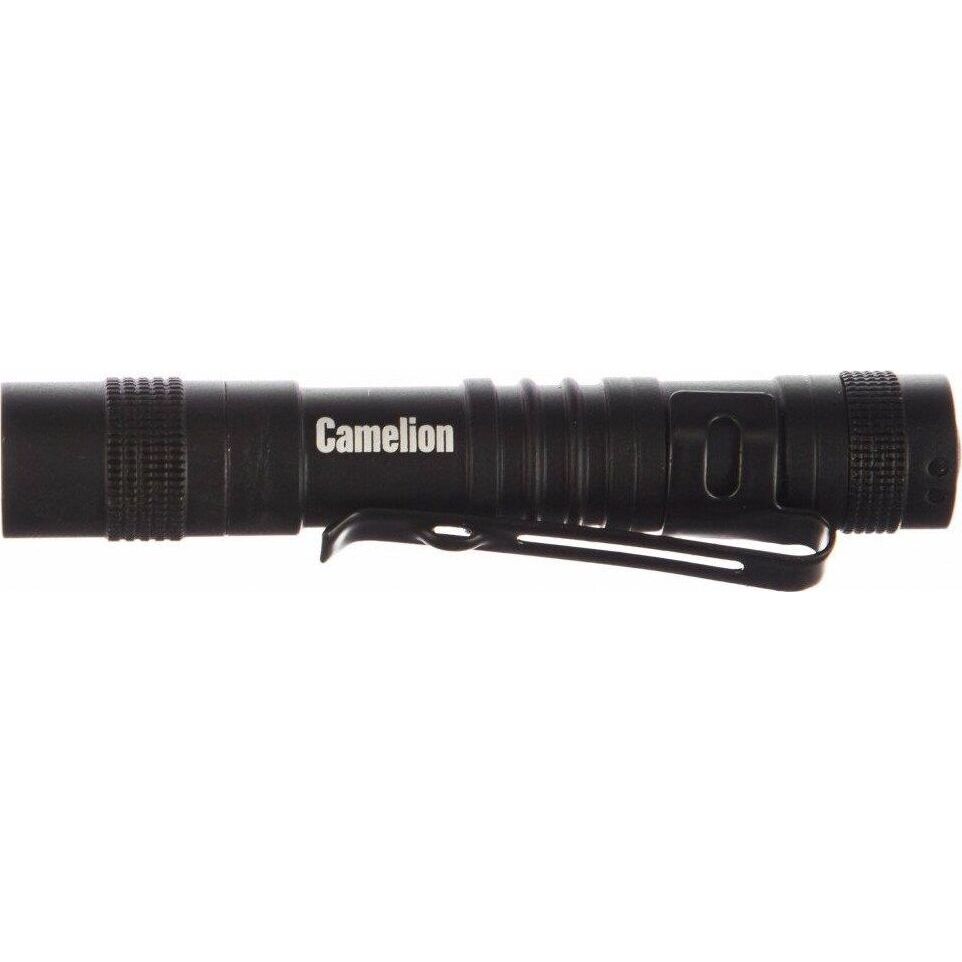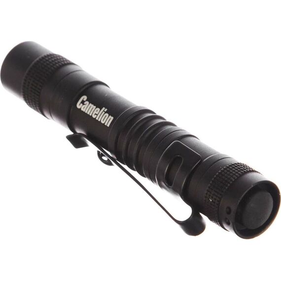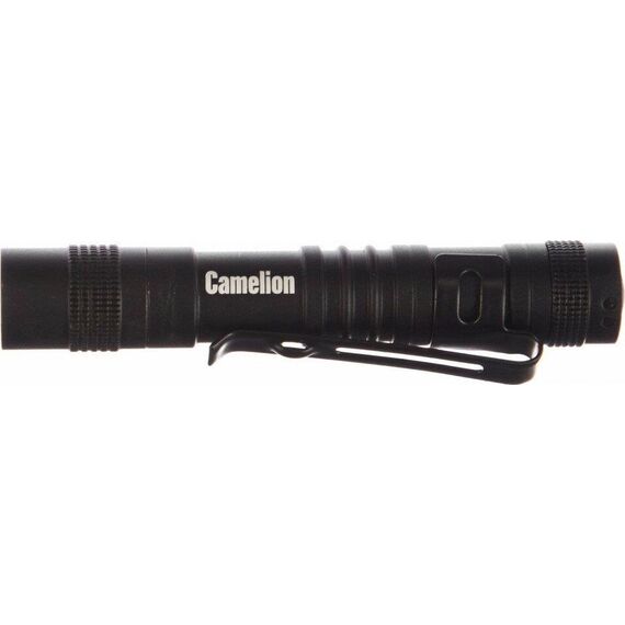 Фонарь Camelion электрический светодиодный. Цвет корпуса - черный матовый. Работает от батарейки 1xLR03 (в комплекте). Материал корпуса - алюминиевый авиационный сплав 6061 / Т6 с анодированным защитным покрытием. Источник света - светодиод XP-E с потребляемой мощностью 3 Вт с цветовой температурой 6500К, максимальный световой поток 60 люмен. Дистанция освещения - до 150 метров. Три режима работы - 100% / 50% / мигающий. Выключатель - трёхпозиционный кнопочного типа (с защитной резиновой накладкой) в задней части фонаря. Время работы при использовании алкалиновой батарейки: 100% мощности - до 1,5 часов, 50% мощности - до 2,5 часов, мигающий режим - более 4 часов. Комплектация: фонарь, клипса для крепления к одежде, батарейка 1 x LR03 Camelion Plus Alkaline, инструкция, упаковка. Степень пыле-влаго-защиты IP65. Упаковка: открывающийся двойной блистер. Максимальный линейный размер фонаря 9 см. Размер упаковки 2,5 см x 10 см x 14,9 см. Вес без упаковки 0,032 кг. Вес в упаковке 0,049 кг.