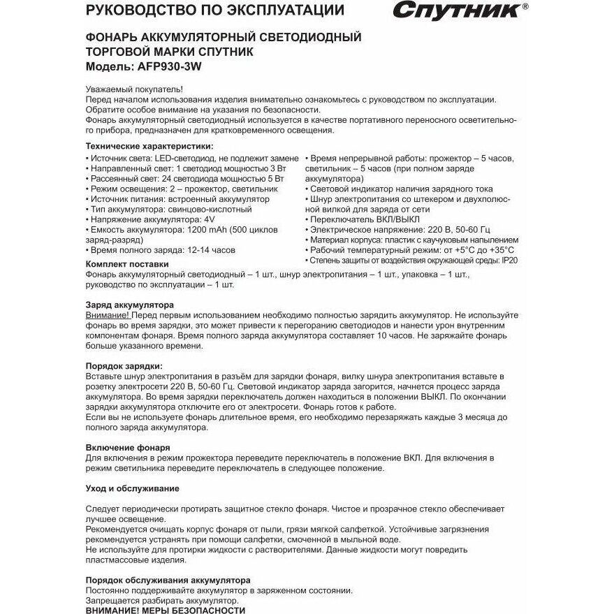 Cветодиодный фонарь СПУТНИК AFP930-3W