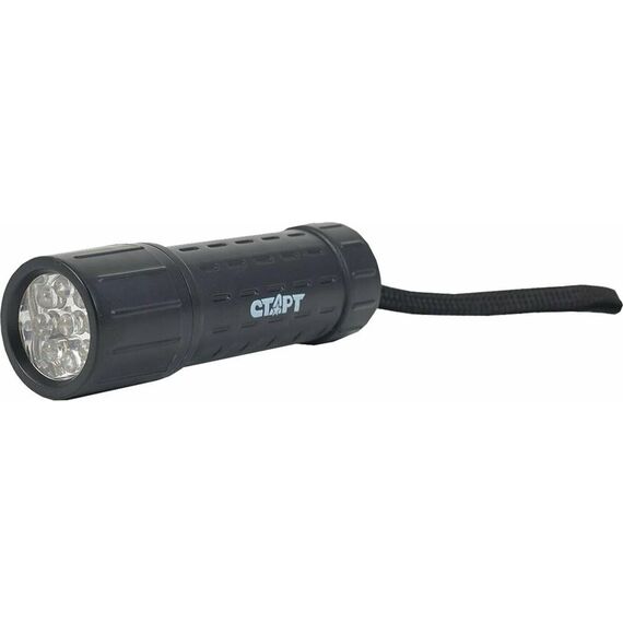 Источник света - 9хLED. Сила света - 11000-13000мкд. Тип элемента питания - 3хAAA (н/к). Материал корпуса - пластик. Цвет - черный.