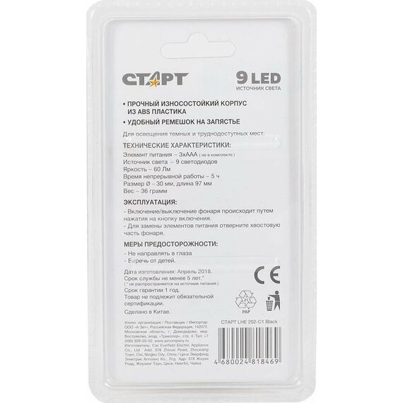 Cветодиодный фонарь СТАРТ (12465) LHE 202-C1 черный