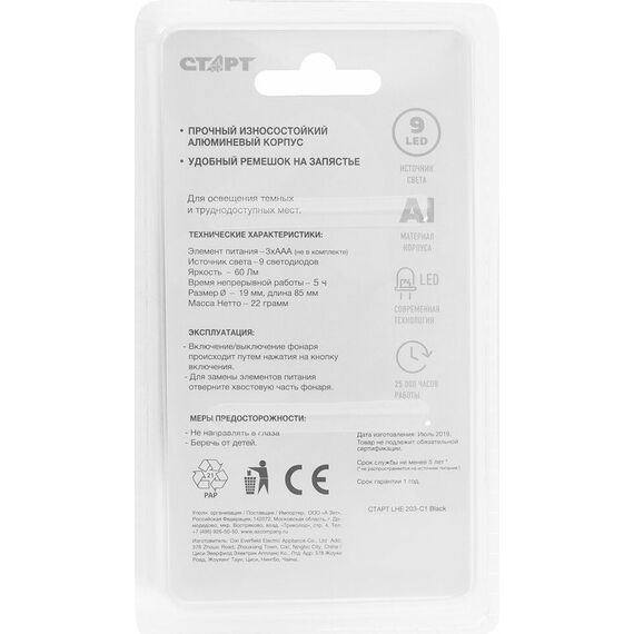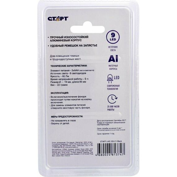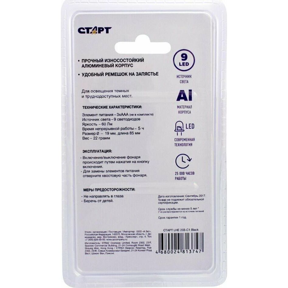 Cветодиодный фонарь СТАРТ (15354) LHE 203-C1 черный