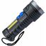 Аккумуляторный фонарь КОСМОС (KOS115Lit) с мощностью и свойствами прожектора в легком ручном корпусе. Умный индикатор показывает уровень заряда и во время подзарядки, и во время свечения. Совмещает луч фонаря (направленный свет) и широкий свет (освещает широкое пространство с одной стороны). Четыре режима работы: яркий, средний и мигающий у луча, и режим светильника. Литиевый аккумулятор. Источник света: мощный луч 3Вт LED; мощный боковой светильник 3Вт COB LED; Источник питания: Li-ion аккумулятор 18650 3,7В 1200 мА/ч (встроенный), индикатор уровня заряда, зарядный USB-шнур в комплекте; Количество режимов: 4 (яркий-экономичный-мигающий-боковой светильник); Световой поток: 120 лм. (луч)/130 лм. (широкий свет, боковой светильник); Дистанция освещения: 120 м. (луч)/17м2 (широкий свет, боковой светильник); Корпус: ABS-пластик (стилизация под металл); IP53; Размер: 14.6x5.6x5.6 см.; Ремешок ручной.