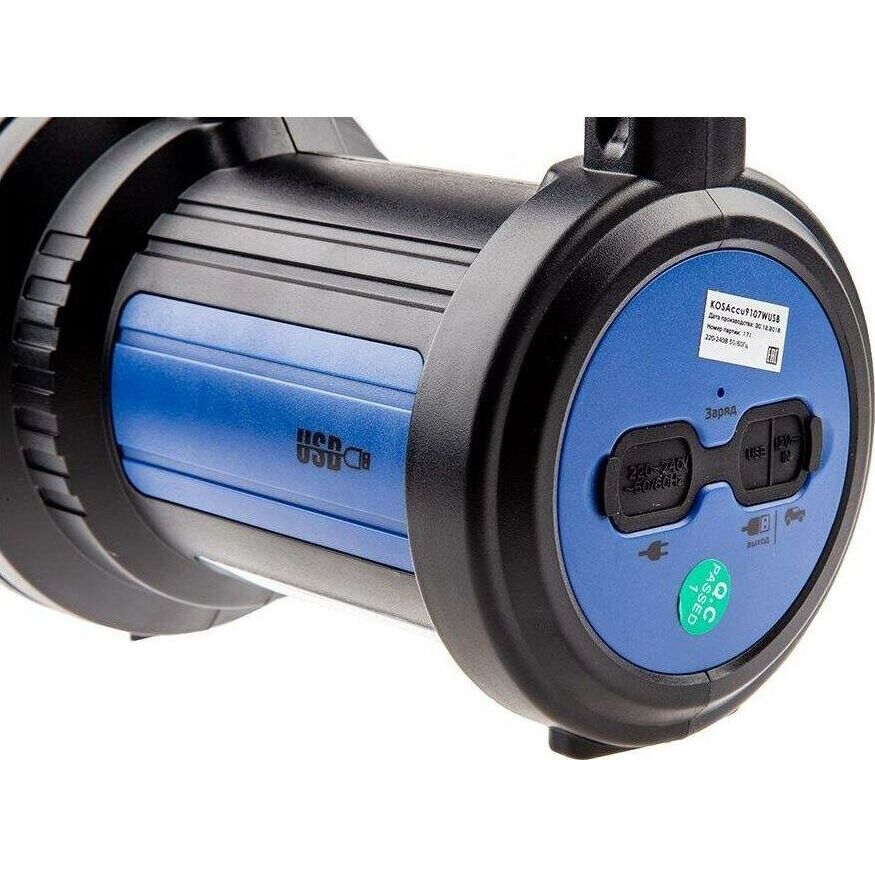 Встроенный powerbank - USB-разъём для зарядки любых мобильных устройств; Мощный светодиод 7 Вт - это 420 лм света. Хватит, чтобы осветить до 400 метров; Встроенный боковой светильник 380 лм по мощности не уступает полноценным фонарям-светильникам - освещение 45кв.м. Чтобы обеспечить работу всех этих функций, в корпусе стоит ёмкий аккумулятор, который в экстренном случае даст до 10 часов света в экономичном режиме Всё это во влагостойком корпусе, который выдержит любой ливень. А так же гнездо на 12В, для экстренной подзарядки в автомобиле.