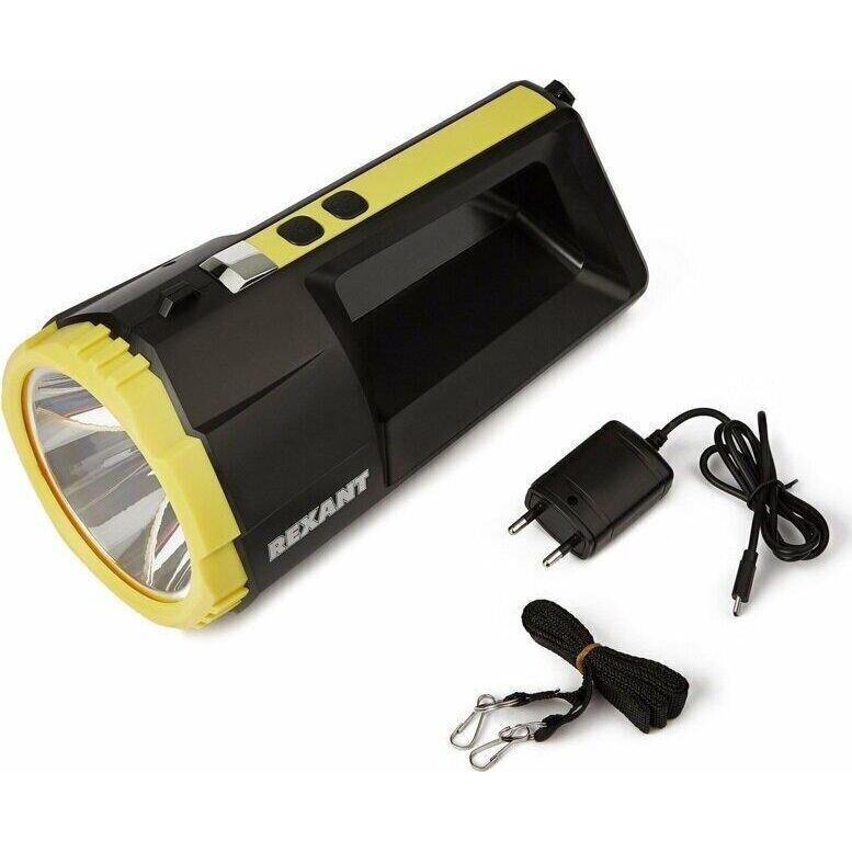 Фонарь прожекторный REXANT (75-7824) Фонарь прожекторный, пятирежимный, с наплечным ремнем и функцией Power bank, черный