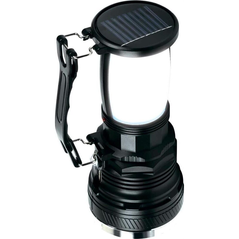 Материал: металл и пластик Тип светового элемента: 1 LED+ кемпинг 2 Вт Три режима работы Аккумулятор: Li-ion 1500 мАч Доп функции: Солнечная батарея 0,55 Вт (17% конвертация) USB выход Комплектация: шнур для зарядки от электросети 220В Упаковка: цветная картоная коробка