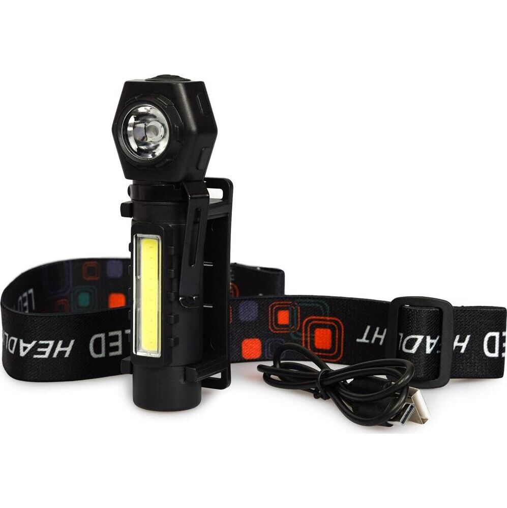Налобный 2в1 Источник света 1+1 COB LED Световой поток 300 Лм + 150 Лм Дальность луча - 50 М Материал корпуса - алюминий Источник питания - 800мАч