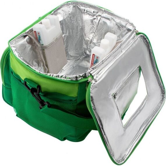 Предназначена для сохранения продуктов и напитков прохладными в жаркую погоду. При необходимости сумку можно использовать в качестве термоса для хранения и транспортировки горячих продуктов. Сумка укомплектована двумя охлаждающими блоками. Материал полиэстер, алюминиевая фольга. Размер 320 х 250 х 240 мм